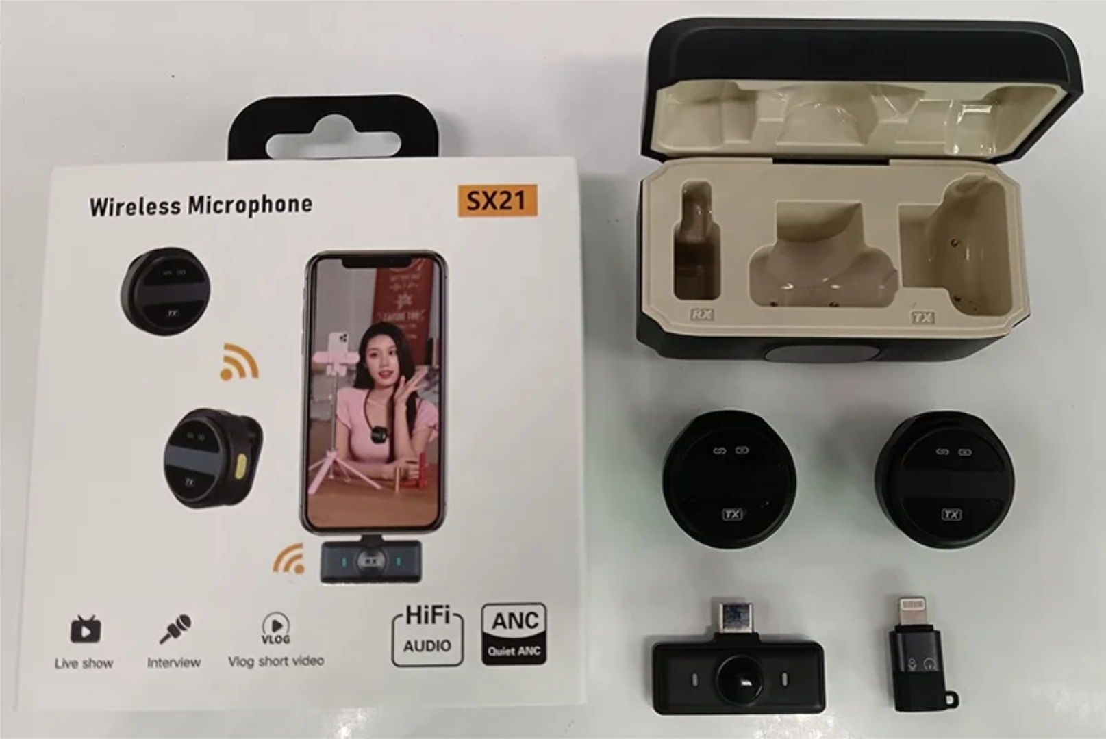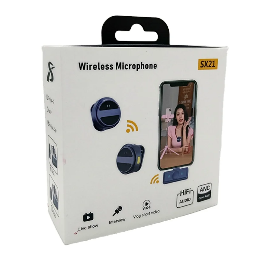 Le microphone sans fil SX21 est un micro-cravate magnétique compact et portable, idéal pour les enregistrements audio et vidéo modernes. Il offre une autonomie longue durée avec une batterie rechargeable via USB, permettant 4 à 6 heures d’utilisation par charge d’émetteur, avec un boîtier de charge qui peut recharger le micro jusqu’à 4 fois. Cette solution comprend 2 émetteurs et 1 récepteur, permettant d'enregistrer deux sources sonores simultanément, et se connecte automatiquement sans nécessiter d’application ni de Bluetooth.Le SX21 capte le son omnidirectionnellement à 360°, garantissant une prise vocale complète, avec une réduction active du bruit pour une qualité claire et sans interférences. Il est compatible avec iPhone, iPad, Android et Type-C, offrant une connectivité universelle. Le micro a une sensibilité d’environ -42 dB, une réponse en fréquence de 20 Hz à 20 kHz, et un rapport signal/bruit d’environ 64-65 dB. Il est léger, facile à clipser sur les vêtements, et conçu pour une utilisation pratique en extérieur, idéal pour les créateurs de contenu, vlogging, interviews, streaming, enseignement ou conférences. La portée de transmission est de 20 à 30 mètres en champ libre.Parmi les fonctionnalités avancées, il y a l’entrée audio, la sourdine, ainsi qu’une latence faible (environ 30 ms) pour une transmission en temps réel. Son design est magnéto-cravate, avec un boîtier compact de 11x14x4.5 cm et poids léger. Ce microphone sans fil est conçu pour une utilisation simple, plug-and-play, sans connexion complexe, offrant une solution professionnelle pour obtenir un son clair et net dans divers contextes audio-visuels.