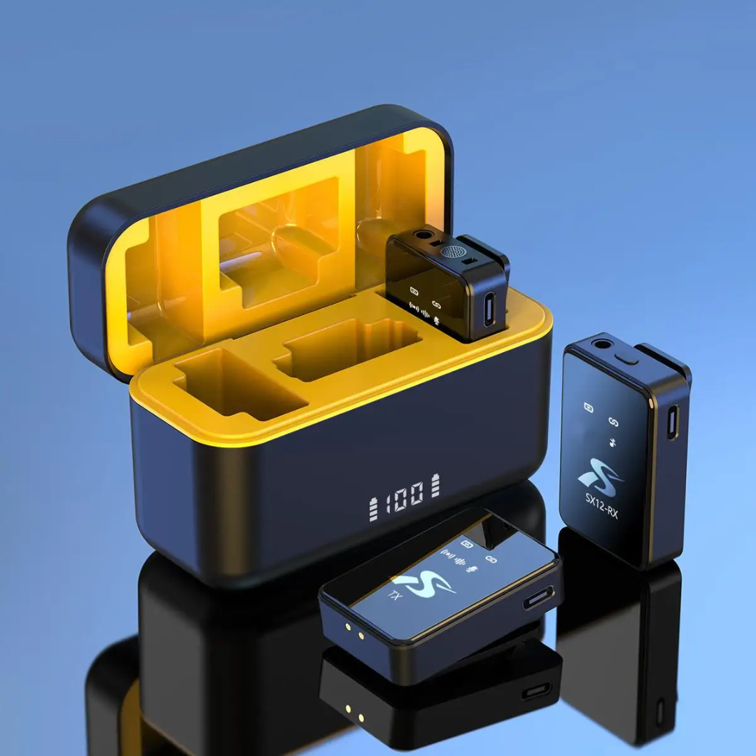 Le micro sans fil SX12 est un microphone lavalier professionnel conçu pour offrir un son clair et de qualité. Il fonctionne sans câble avec une portée d'environ 20 à 50 mètres selon les modèles et conditions, et utilise une communication sans fil. Il dispose de plusieurs connecteurs compatibles (Type-C, Micro USB, 3.5mm, USB-A, et pour iPhone), ce qui le rend polyvalent pour smartphones, caméras, ordinateurs, et autres appareils. Il intègre une technologie de réduction de bruit qui garantit un son HD avec une bonne isolation des bruits de fond. Le micro capte le son de manière omnidirectionnelle avec une réponse en fréquence allant de 20-40 Hz à 15-20 kHz, un rapport signal sur bruit d'environ 64 à 90 dB, et une sensibilité autour de -42 dB ± 2 dB. Il est léger et portable, adapté pour des usages variés comme les interviews, conférences, live, performances, et créations de contenu. Sa batterie autonome dure entre 5 et 6 heures. Ce micro est apprécié pour sa simplicité d’utilisation sans réglages compliqués et sa qualité sonore professionnelle.